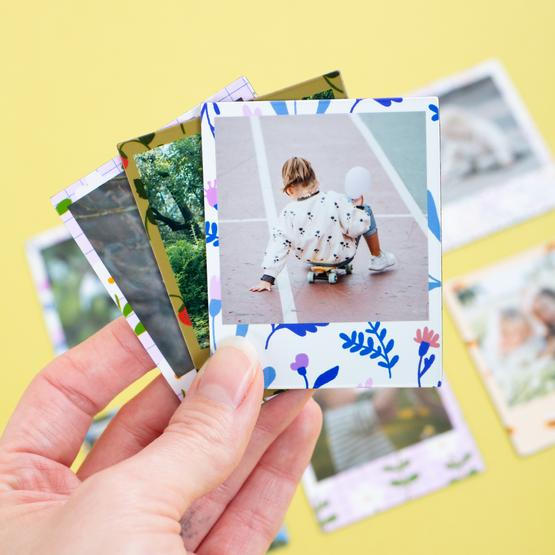 Scegliete tra una varietà di formati fotografici che includono 2 mini stampe fotografiche quadrate - stampe fotografiche 2x2 e immagini 3x3 e altri quattro formati fotografici - mini foto rettangolari, foto retrò, foto rotonde e foto a cuore.